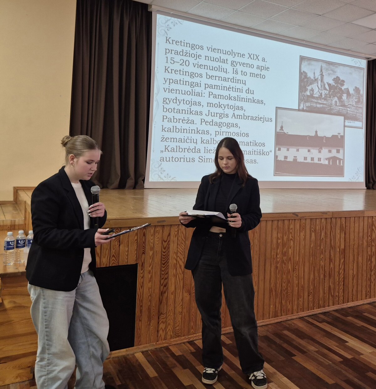 Renginyje dalyvavo ne tik gimnazijos bendruomenė, bet ir svečiai Kretingos rajono savivaldybės Kultūros ir sporto skyriaus vedėjo pavaduotoja Asta Pocienė bei Kretingos miesto gidė Diana Jomantaitė-Jonaitienė – dėkojame, kad buvote kartu ir savo dėmesiu bei palaikymu suteikėte konferencijai dar daugiau prasmės.