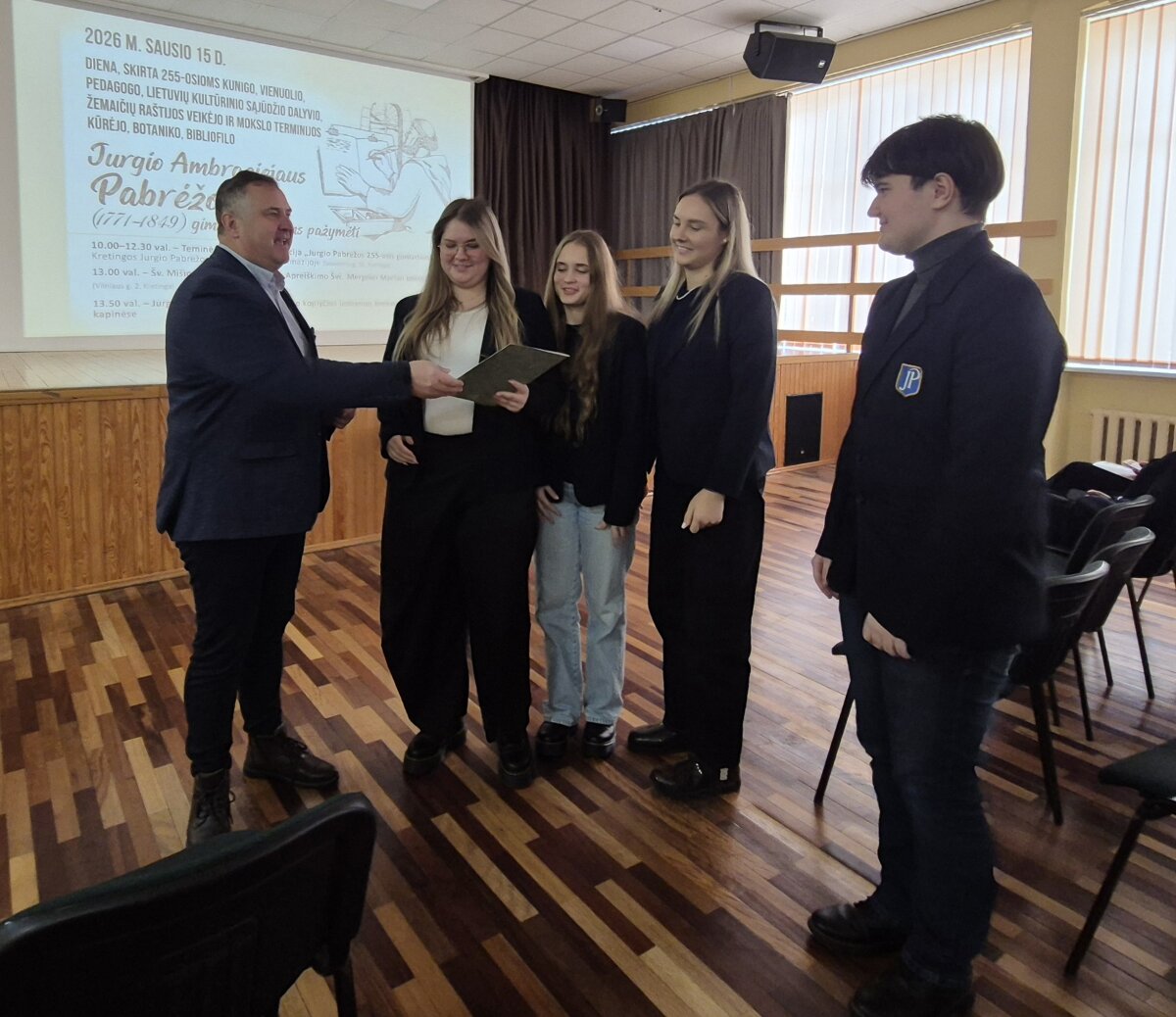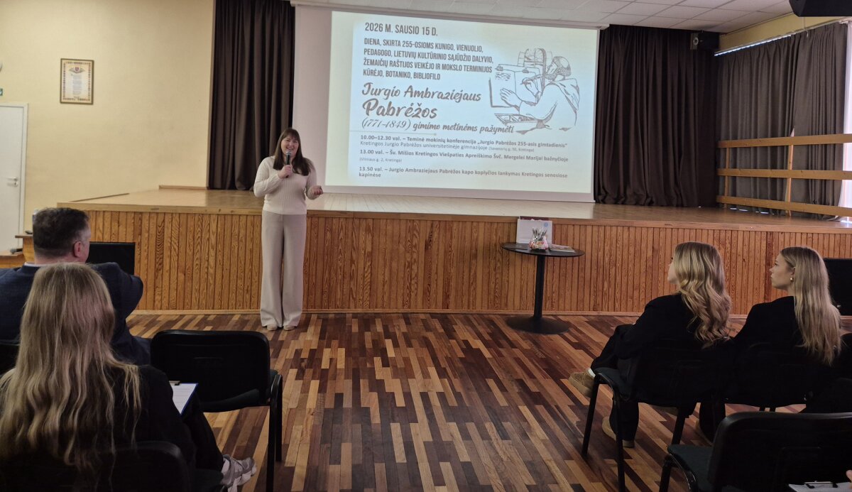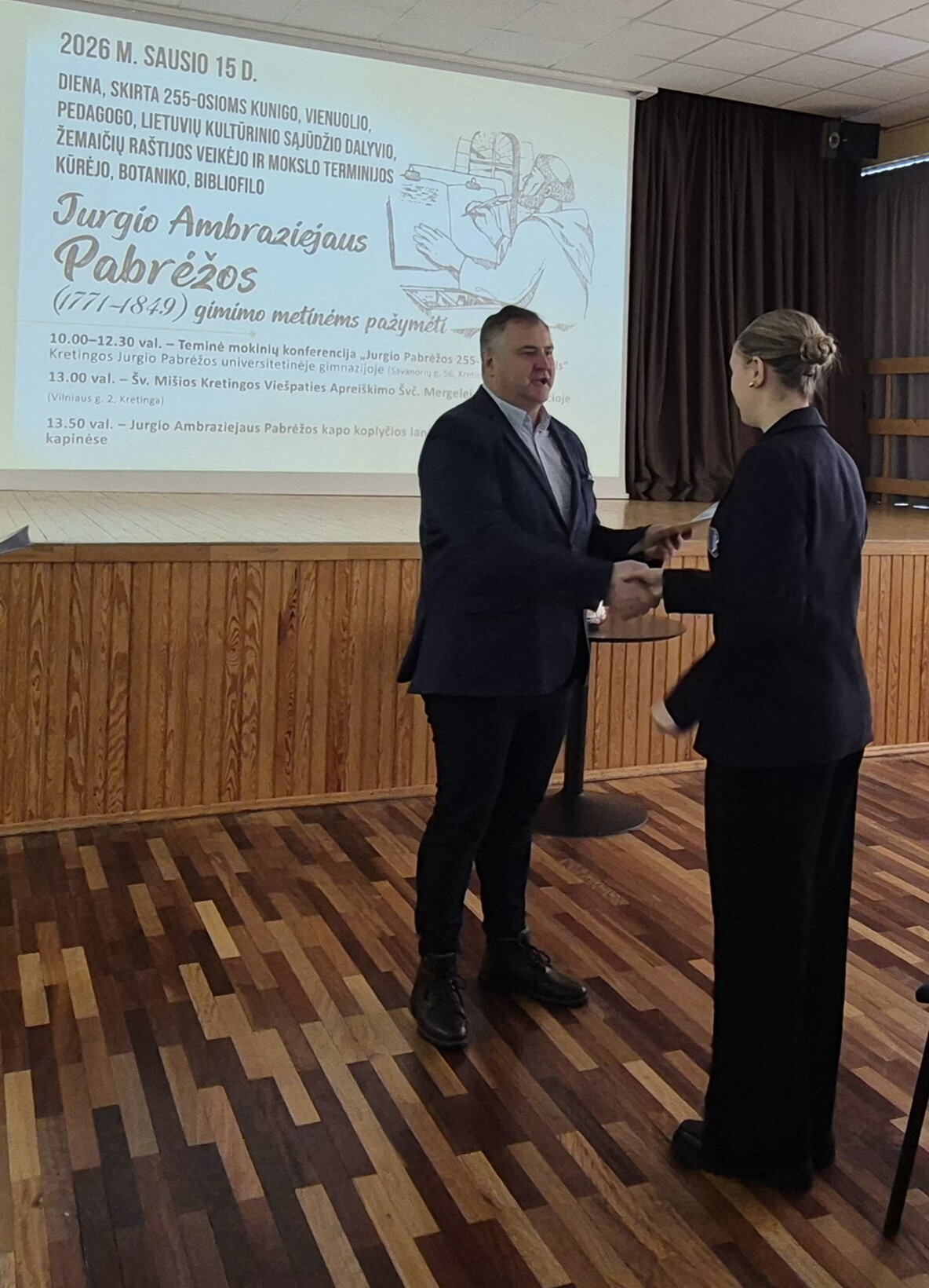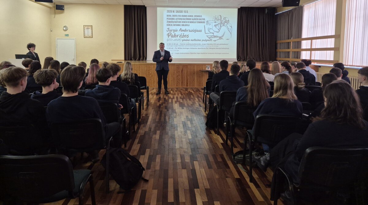 Dalinamės džiugia žinia – mūsų gimnazijoje 2026-01-15 d. sklandžiai įvyko teminė mokinių konferencija „Jurgio Pabrėžos 255-asis gimtadienis“.