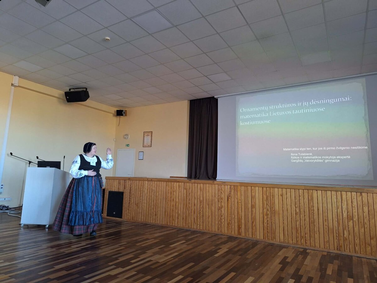 Vėliau pranešimą skaitė Klaipėdos universiteto Socialinių ir humanitarinių mokslų fakulteto dekanas, etnologas prof. dr. Rimantas Balsys. Jis aptarė mitinių ženklų reikšmę mūsų kultūroje. Gargždų „Vaivorykštės“ gimnazijos fizikos ir matematikos mokytoja ekspertė Ilona Tulabienė nagrinėjo ornamentų struktūrą ir jų dėsningumus lietuvių tautiniuose kostiumuose, atskleisdama matematikos ir tautodailės sąsajas. Šilutės pirmosios gimnazijos lietuvių kalbos ir literatūros mokytoja metodininkė Vaida Galinskienė pristatė lietuvininkų tarmę bei Mažosios Lietuvos tautinį kostiumą.