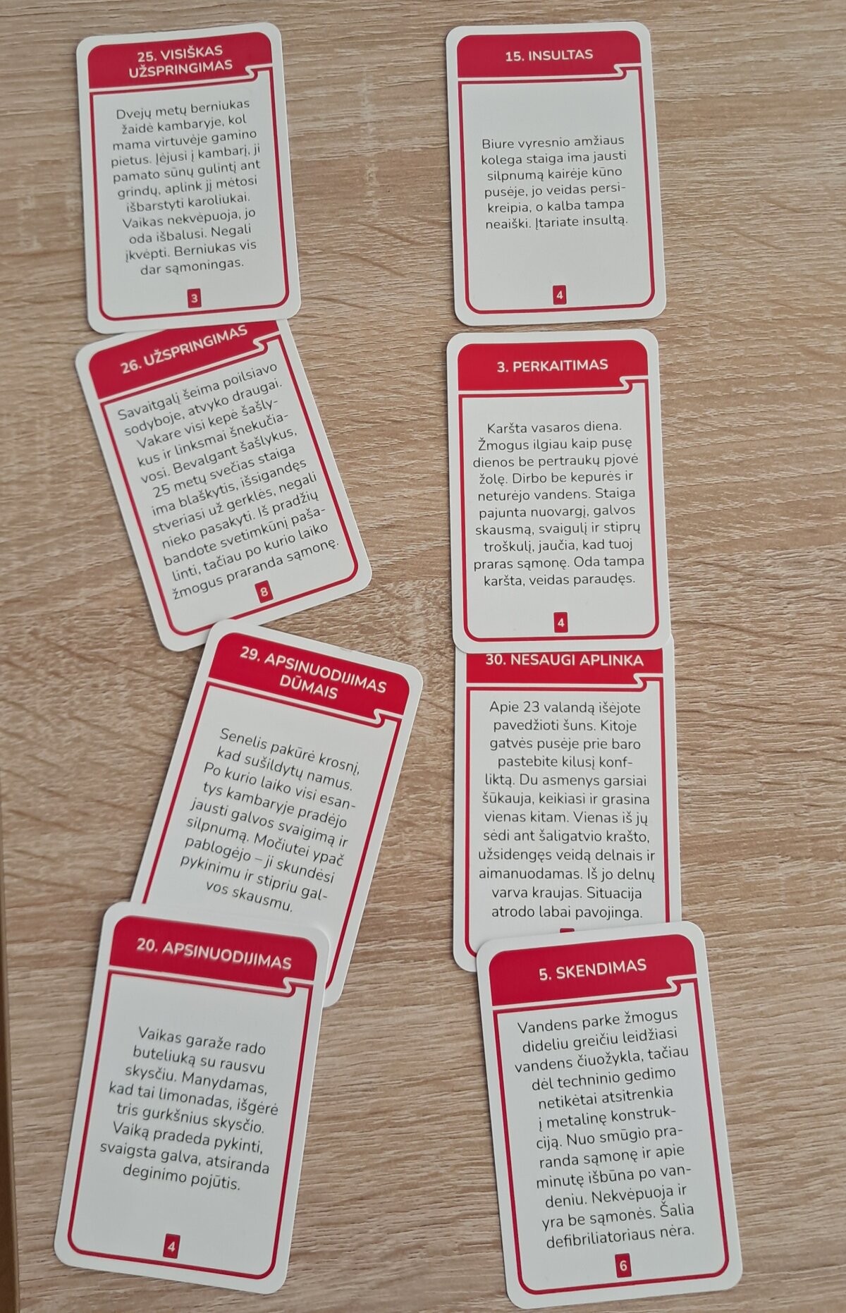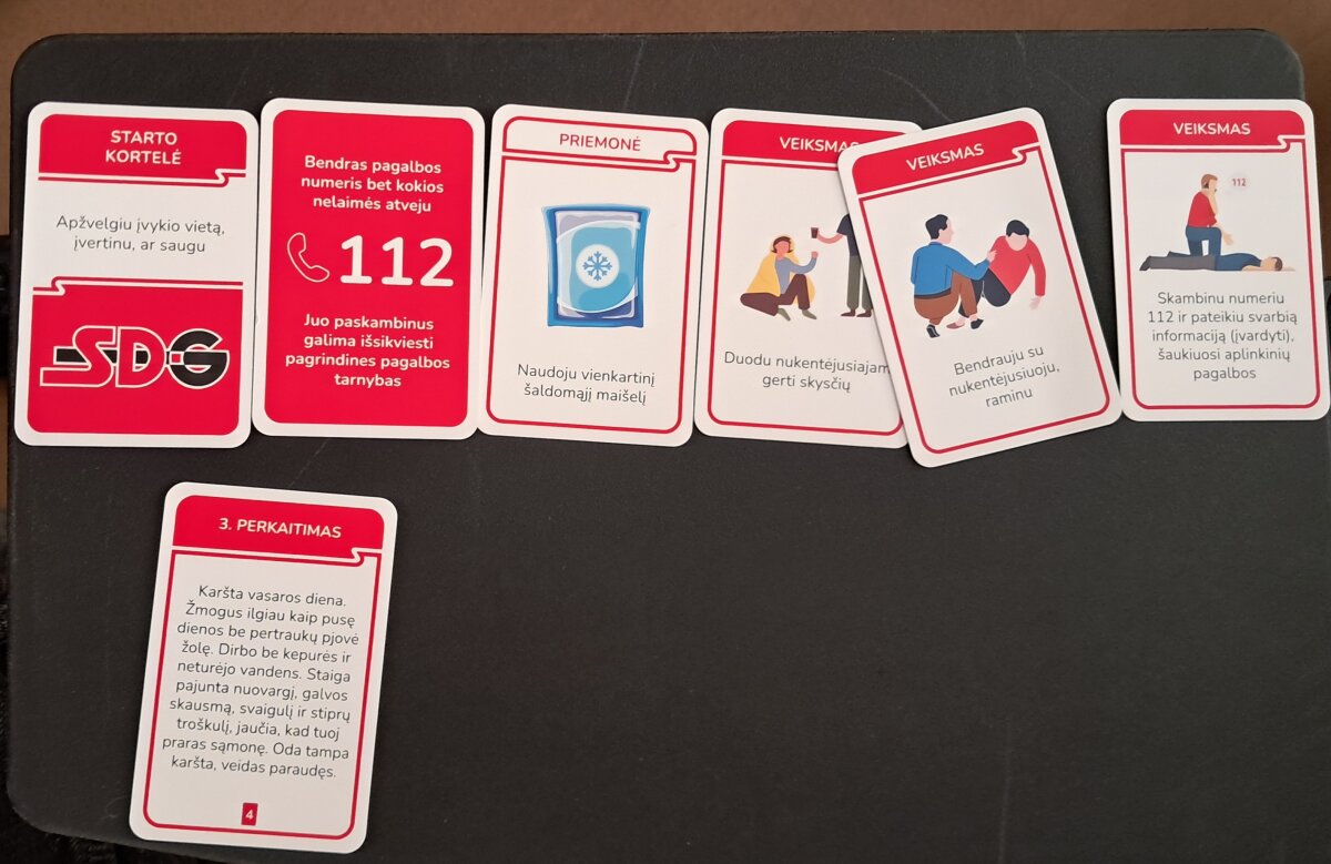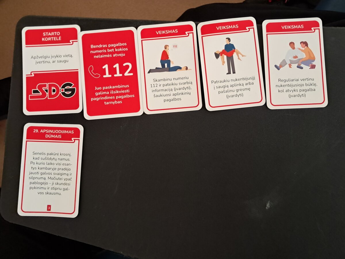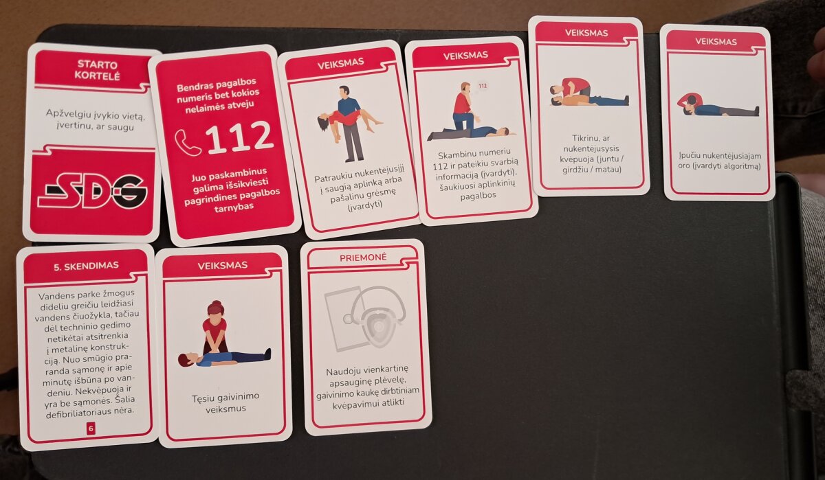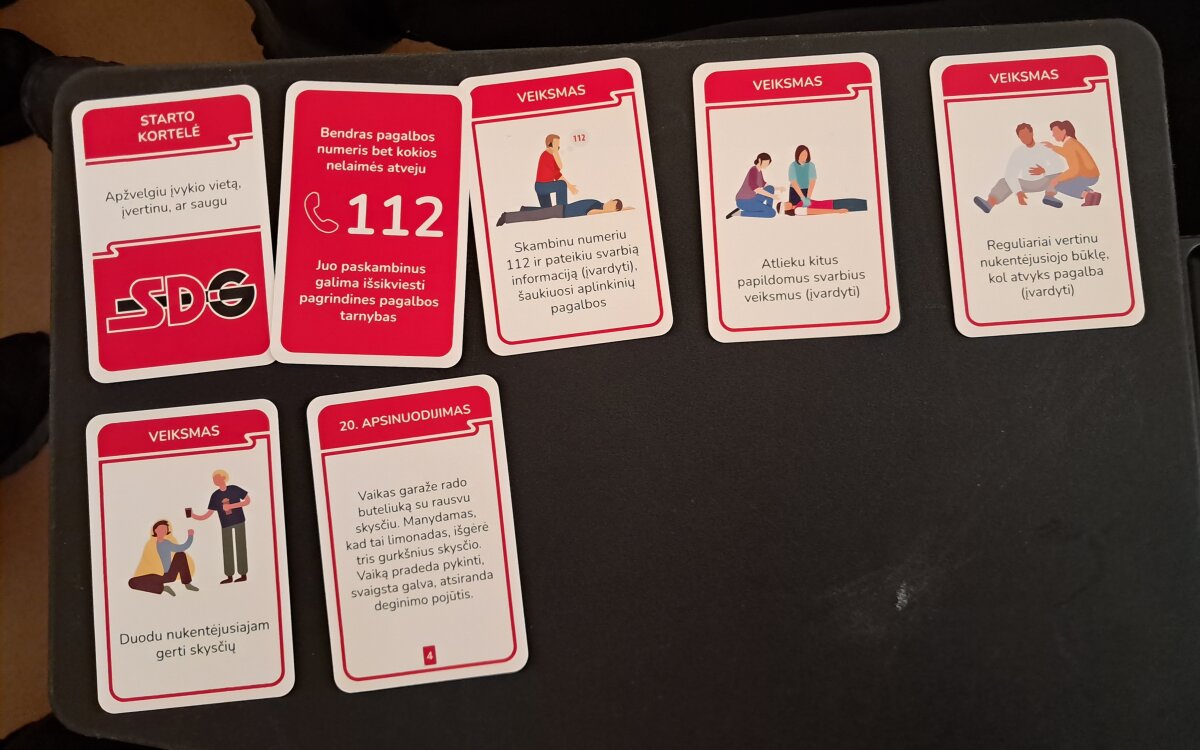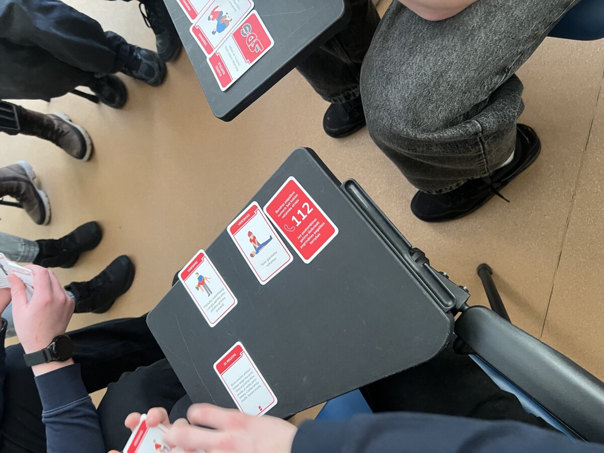 Pirmieji savo žinias demonstravo I a ir I b klasių mokiniai. Susiskirstę į komandas, gimnazistai analizavo burtų keliu ištrauktas praktines situacijas. Užsiėmimo metu mokiniai turėjo ne tik teoriškai pagrįsti savo sprendimus, bet ir parinkti tinkamas pagalbos priemones bei veiksmų seką konkrečioms traumoms ar sveikatos sutrikimams valdyti.