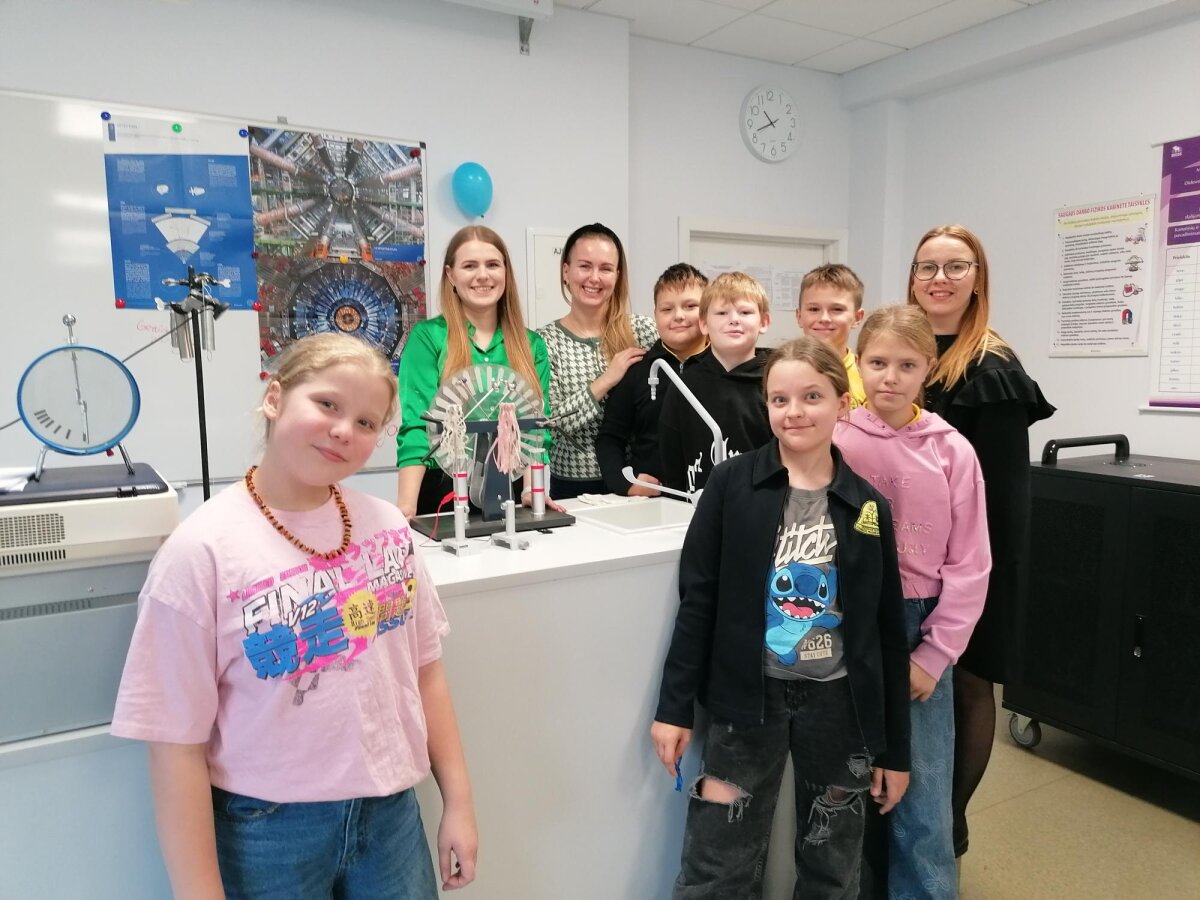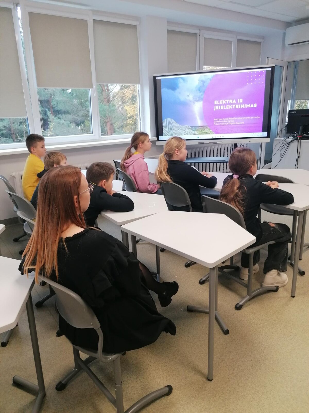 Spalio 24 d. Gamtos mokslų centre lankėsi Krumaičių pradinės mokyklos ketvirtokai. Gimnazijos fizikos mokytoja Virginija Kuprienė mažuosius mokinius supažindino su elektros veikimo principais. Užsiėmimo "Elektra ir įsielektrinimas" metu pradinukai kartu su mokytoja ir mokinio padėjėja atliko praktinius darbus: lygino, kuri medžiagios labiau įsielektrina, elektros srove bandė "judinti" vandenį, išbandė įvairius elektros matavimo prietaisus ir aptarė, kaip saugiai elgtis su elektros prietaisais ir tada, kai žaibuoja.