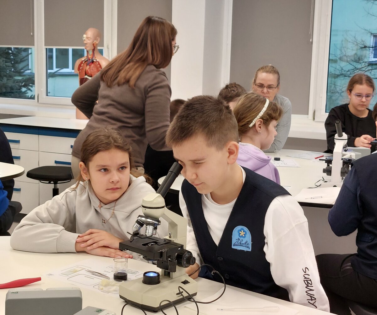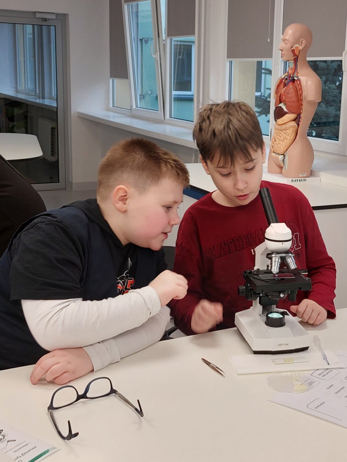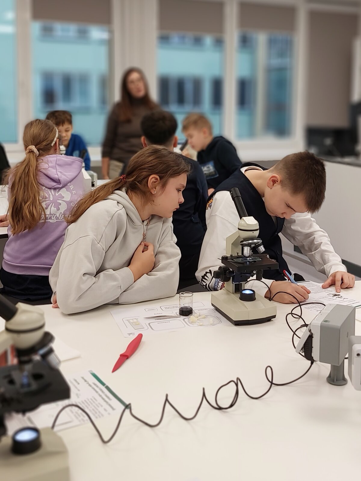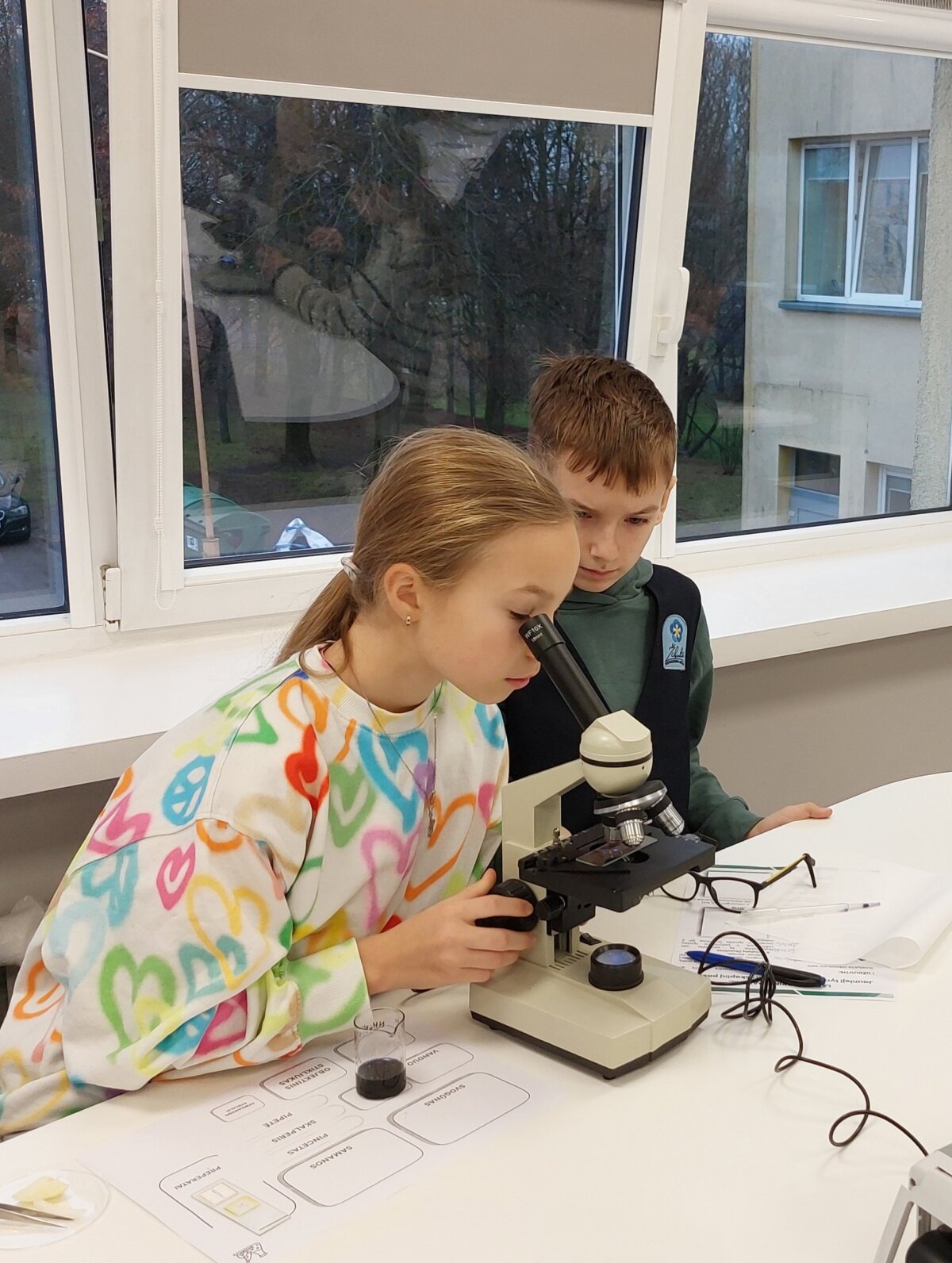 Gruodžio 4 dieną Gamtos mokslų laboratorija pasitiko mokyklos-darželio "Žibutė" 4 klasės mokinius. Gimnazijos biologijos mokytoja Sandra Monkuvienė užsiėmimo "Jeunieji tyrėjai atranda mikroskopinį pasaulį" metu mažuosius mokinukus supažindino su nematomu gyvybės pasauliu - mikroorganizmais. Mokiniai turėjo galimybę per mikroskopą tyrinėti ir mikroorganizmus, ir svogūno luobelę, ir net savo plauką. Džiugu, kad mažiesiems tyrėjams puikiai sekėsi dirbti su mikroskopais, jie patobilino praktinius įgūdžius ir sužinojo daug naujų dalykų. Gamtos mokslų laboratorija - atvira būsimiesiems gamtos pasaulio tyrinėtojams!